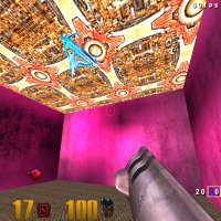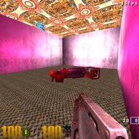 Basic entities continued... Here are the final results. You can see the white light at one end and the purple light on the other. The rocket launcher with ammo looks fine with the quad hovering above. You could make the room look darker just by reducing the light entity value or changing to a different color.