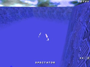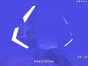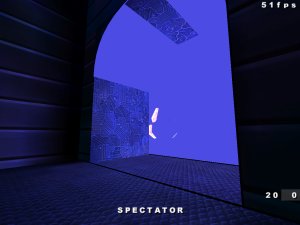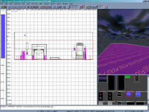 Then go up to the textures option and select 'sfx' again and choose any of the 'fog' textures that fullfills the desired effect within the room. Once the texture is selected you'll see the new brush with 'fog' written all over it. Save the map, compile, and launch the game. Below you can see the veiw from an adjacent room and from above the new brush showing the fog line. A teleporter model is used to demonstrate the visual effects of your new brush.