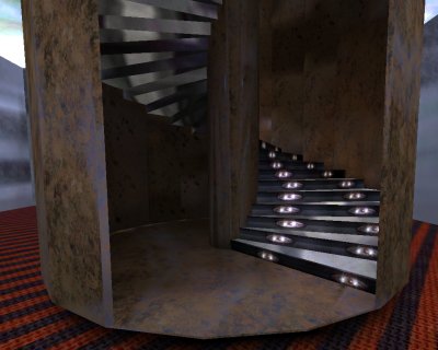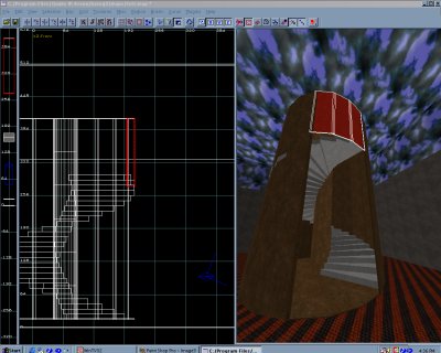 Spiral Staircases Now enter your enclosed stairwell and select the brushes that have sealed off your entrance. Use the z-axis window to raise the offending brushes so that they allow access to the first step. Repeat the process on the opposite side with the top of the stairwell.